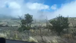 Saddle road has extreme climate almost 7 types from rain to cloudy to sunshine you can experience all in one road drive , and because of elevation the clouds are very low and touches the road it seems like a drive in clouds .
