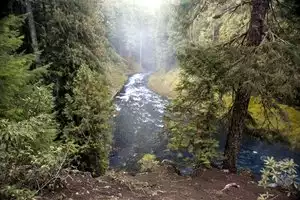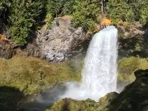 In fall the colors are amazing! The falls are well worth a short easy hike down to viewing area. Only a ways down river from Clear Lake, the head waters of the pristine McKenzie River.