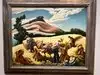 The three floors over a huge complex reminded us of the Smithsonian Art Gallery. Although not as a large as that one, the varied art genres we just about as impressive. I found the Native American exhibit on the top floor especially stunning and unique. Several clothing and ceremonial articles on display that are impressive, along with weapons, sheaths, and other articles that help one appreciate that part of our US history. The rendition of the Battle of the Little Bighorn on an animal hide was especially poignant.