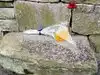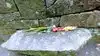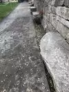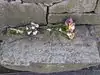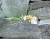 Nicely explained by tour guide, Karen. Interesting that stone wall created without mortar. Flowers on cantilevered stones.