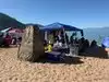 We visited in late June on a week day. When we arrived, a lot of cars were already parked there, and many good spots on the beach had been taken. If you visit in summer, make sure to take a beach umbrella, chairs, and food. You cannot barbeque, but propane stoves are fine. The entrance fee is $15 for non-residents and $10 for residents. The water is cold, so many people were just sun bathing or kayaking.