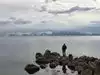 navigate the large round rocks along the shoreline.