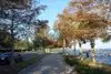 You'll find people just sitting, watching, and fishing under the trees along this pleasant, clean, and well-maintained walkway. The there is a concrete wall at the water's edge, so you won't be dipping your toes in the water. At one point, there is a city park and playground, but other than that, it just a sidewalk along the bank of the lake.