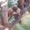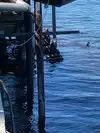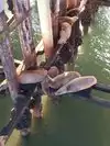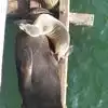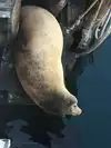 Sea lions are often perched atop a plank seen through a large opening in the deck of the wharf towards its end. When you hear them from the beach, you know they're way down at the end of the wharf.