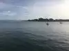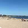 We took off mid morning and arrived around noon. We hit the beach with our beach chairs and towels. Even though it's mid summer there weren't large crowds, I think in part because it wasn't a weekend day. The sand was ok. He waded in the water while I did a little rock collecting.
