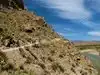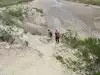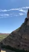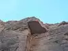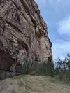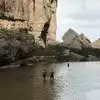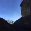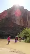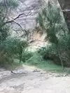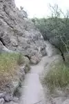 There was a make shift path a ways down to the right where the river was almost dry. In order to get to the trail, however we had to traverse a cliff. It looks more intimidating than it actually is. We had a party of 9 ranging in age from 9 to 67 and we all made it both up and back without too much trouble.