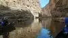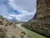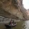Watch the meandering river move slowly through the steep walled canyon. Kayakers maneuvering through the slow moving and some places shallow waters add to the majesty of the location.