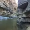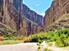 Towering cliffs on each side of the river protects the canyon from the hot sun. Shallow peaceful river that is great for wading (about knee deep when we were there) about a mile along the river.