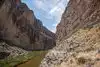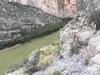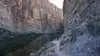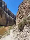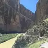 One can see the entrance to the canyon from a long way off. That increases the anticipation. The high canyon walls along the river in Mexico can be seen from a distance also. The short trail leads to the Rio Grande River on level ground. Then the trail leads up a steep path for a short ways to wonderful views of the river and steep canyon walls. Usually there are kayakers and canoers doing their float trips. Gives a great perspective for pictures. It is cool in the canyon so on a hot day that would be a great place to go. Be sure to do the entire trail. Some people turned back rather than descend to the river level at the end. But it is worth the climb back up to return. Don't miss!