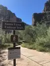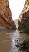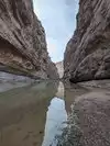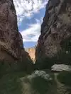 It was busy when we arrived, the parking lot was full. Walked up the trail to the river, there were a lot of people playing in the brown water! We could see the canyon but it looked ike there was no access to it as the water was quite high, there had been a lot of rain the previous week and the road coming in was still flooded! Then we saw the way across the creek to the rope, lucky we both had open hiking sandals on, also had hiking poles to test the depth of the water! Walked up some rock switchbacks a bit like Walters Wiggle and then into the canyon, not a lot to see apart from the canyon walls. We didn't make it to the Rio Grande as the water was to high in the Canyon, disappointed!