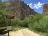 I was initially puzzled by the difference in trail length listed in different placed. When I took the hike, I realized it is a function of how high or low the river is. When we went, it was very low, so the hike was a bit longer into the gravelly base of the canyon. One of my travel companions bailed out, though, since parts of the trail are very steep and there are no rails. Be prepared!