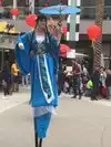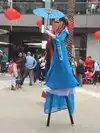 Dressed up people on stilts and balloons for the kids, decorations ! So pretty and nice.