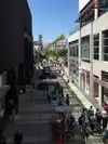 An open air shopping mall in Santa Monica. Seems recently constructed. Looks new and modern. Nice architecture as well.