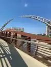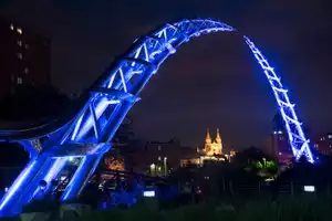 The architectural lighting adds nice ambiance to the arc and bridge, which are on a nice river walk and bike path. Nice stop if you’re downtown or biking through.