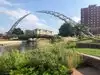Beautiful area to walk along the river. The Arc (not arch) is a unique structure that lights up at night and produces a blue arc across the gap in the structure at the top.