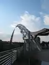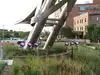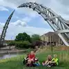 the Arc of Dream seems to be the landmark of the city (Sioux Falls), there is an indoor space showing the information about this Arc, it's just an structure for you to see it on the ground, you can't walk on it. There is light shinning on it at night. You can walk along the river, it's a short one, and there are some sculpture in that area, too.