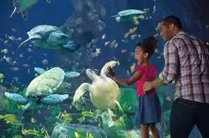 More expensive than disney, food very poor, staff rude, serving staff literally dirty, girl on panni stand had the dirties jumper on chewing cuffs, ended up having an an argument with staff to get what we had paid for. Guess its the training dont give whats paid for and you can demand another tip to sell them another one. More like a very expensive theme park than seaworld. Our experience was it was trying to be too many things and doing nothing well. Pricing was not clear and seemed to he what they thought they could get out of you. Drinks bottle advertised at $17.99 at the till price went up to $27.99 + $6.99 to fill refills extra, obviously not available where you but the bottle. Save your money and go elsewhere. UK holiday maker, oh yes they expected a tip for poor service.