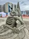 I attended the Seaside, Oregon Sandfest on 9/15/24. It had a $5- admission fee to tour the dozen sand sculptures…..and was worth every penny! You are given a plastic chop and asked to use it to vote for your favorite sand sculpture. My family had so much fun walking around trying to decide which art piece was worthy of their vote . Most of the artists were there, fine tuning their creations. My favorite was the Pirate Skeleton. Very Disney-ish! There was also a pirate chest with a resident octopus, dolphins, an Indian Palace, one on mental illness, etc. I would definitely go back! Seaside is a delight at any time of the year, but this made it even more fun!
