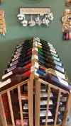 Small intimate room, w/ glass doors to large balcony & a breathtaking view. We enjoyed 4 whites; Solstice was unoaked & a bit sweet for my taste, although Liz definitely warned us! It would pair nicely with some chicken salad, but I was glad I sampled a glass rather than buying a bottle. For sweeter palates, the Strawberry Wine was a pleasant surprise & would pair perfectly with Summer Berry Trifle. The Pinot Grigio was crisp w/ expected apple notes. Riesling was nice light, semi-dry & refreshing. Our fav? The Sauvignon Blanc w/ nose of stone fruits (apricot to me, peach to my husband) & kiwi made for a crisp refreshing drier white. 3 Reds were quite pleasing for a summer day. Sunset had a very nice finish with a medium body. Cab Sauv had a great jammy nose w/ just a hint of oak & tobacco, perfect for some grilled meat on a cool summer mountain evening! Our favorite was the incredibly smooth flavored Syrah. Great nose, great flavor & finish. The absolute highlight of this tasting was Liz’s expert guidance. Her friendly banter through our tasting provided just enough information to confirm our choices, sharing little tidbits along the way about the winemaking, the winery & Virtual Tastings. We definitely enjoyed the well-curated selection of wine accoutrements & local foods: a nice variety of retail to pique the interest of any wine taster! We loved the local crafts. We will definitely be back every time we visit the White Mountains.