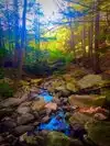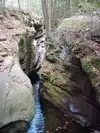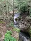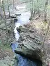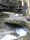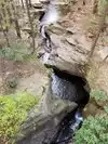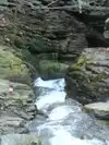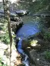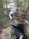 The water carving its way thru the rocks leading to pools of crystal clear water. Rocky and short steep hike to the top of trail, then a trail thru the woods down along the stream that's one big loop