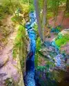 The stream runs down a narrow cleft in the mountain . Could be a beautiful place but the trash is everywhere. Tires, cans, toilet paper and the list goes on. Lot of broken glass in parking area.Not easy to photograph. Calls for care as some places can be slippery and steep places. Never seen such littering. Seems the county has abandoned the place and no one in community cares to make it better. Won't go back.