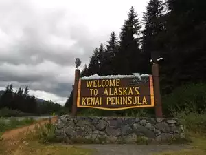 • “Welcome to Alaska’s Kenai Peninsula” sign (on right if heading south) – Small parking area, you can walk up to the iconic sign and take photos.