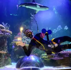 There are interactive exhibits where you can touch sea life or stick your head up in a bubble to see sharks up close. But, the aquarium is small. It's more geared towards children.