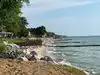 Beautiful beach with views of the lighthouse, a great spot for walking and enjoying the lake, taking photos, eating lunch, or swimming in the summer.