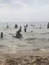 Love this beach! Perfect for kids young and old! Nice facilities. Snack bar, playscape, lifeguards, volleyball courts and beautiful original statues; what's not to love???