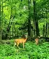 Gentle deer can be seen as you drive by. Some are in groups, while other times only two or three are visible among the green fioliage.