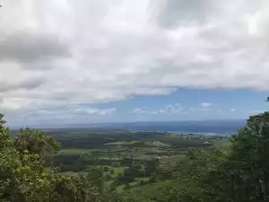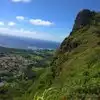 This is a great trail very close to the town of Kapaa. It is also known as the Nounou trail. It has a pretty rapid climb at first but there are beautiful ocean views! There is a small covered picnic table near the top. When you arrive at the top don't forget to take the small trail that goes to the left. There are some pretty awesome wind caves there! The trail is about 2 miles (4 round trip). Beautiful views at the top!