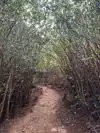 About 20 minutes in I climbed an easy wall that looks intimidating but is actually pretty easy. I think there was a way to walk around it. Around this area is a spot to go left and upwards as the trail narrows. Don't go this way. Go to the right which has a wider trail the somewhat dips down that goes up.