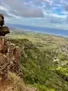 Hike is not too challenging, until you get past the picnic table. The Ultimate Guide Book recommends not going further. It was dry and calm so we did. The walk along the spine of the hill was wide enough that I did not get vertigo but then there is the rock wall to climb up with a fatal fall to inspire caution. Then on top of the "face" I wanted to crawl on hands and knees. We did not go to the "chin" because some bozo was doing yoga poses (no thanks). It was exciting and the view was great- I can say I did it once. A safer hike with a better view is the Koke'e rim trail at the end of the Waimea canyon road.
