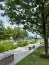 Enjoyed this park immensely. Parking nearby for small fee. We walked around, enjoyed band playing music, sitting on the adult swings enjoying the river view as well as the breeze. Large park, beautiful landscaping. Great for young children with the water sprinklers and slides. Just an overall great space!