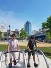 We stopped on our way through the area. It was a very interesting & attractive park. The scenery was beautiful with the water beside you and the city scape on the other side with numerous bridges. The swings they had for adults as well as children was a neat touch. Enjoyed our visit, was well worth the stop.