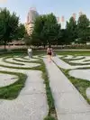 This park is fun for all. This has a spray-park, a real labyrinth, Swings, benches, activities, kids play area, riverfront walk and what not. One can defenitely spend 2 - 3 hours here. Especially with toddlers and young kids. There are few parking garages near the park. The skyline and riverfront views from the park is amazing.
