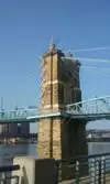 Green space along the Ohio River offering nice views of the river and of the John A Roebling Suspension Bridge. The bridge was built in 1866 by John A Roebling who was the same architect of the Brooklyn Bridge which opened 20 years later. It was the longest suspension bridge in the world at the time of its opening. The park is flanked on each side by the Bengals stadium on one end and The Cincinnati Reds stadium on the other.