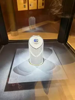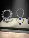 The world's largest blue diamond, the Hope Diamond is displayed as a necklace, and there are a lot of people surrounding it. The display rotates 90 degrees every 10 seconds or so for each side to be able to take a peek and snap pictures. So pack your patience if you want to see it.