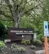 The two-acre park’s main attraction is the magnificent falls which cascade 268 feet over granite cliffs and are claimed to be twice as high as Niagara Falls. Depending on current water levels the falls width varies from 50 to 150 feet. Parking in the upper parking lot, which is free, allows you access to the sky bridge which has ADA compliance to the observation viewing site (distance from parking lot is about 200 feet). The observation areas allow you to see the falls without traverses the very steep 0.5 mile scenic nature trail which meanders through old growth trees. Although short, the path is paved and has rest areas. The informative signage highlights different plant species, gives history and great historical photos of the area. Leashed pets are welcomed throughout the park. There are multiple picnic tables encrusted in cement pads which are available but there is no barbecuing in the area. Built next to the falls is the Salish Lodge & Spa with two restaurants, gift shop, spa and complimentary valet parking. The lower boardwalk, lower observation deck and all restrooms remain closed. The park is open from dawn to dusk.