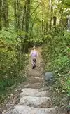 Came here with my family including 5 year old twin girls. They were able to maneuver their way down to the falls with assistance from us and their older siblings. Nice relaxing atmosphere and the girls loved looking for salamanders. Enjoy, bring water!
