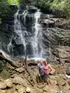 Beautiful falls in the mountains! A bit hard to find driving up from Maggie Valley as not well marked in that direction. Once we found it, however, it was definitely worth it. Short hike down to the base with ropes to hold on to.