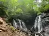 Park your car carefully on the shoulder of the road. Find your footing to descend a few steps to the viewing platform. From the platform, you will see one waterfall easily, but the second will be mostly obscured. If you want to get closer to the bottom of both waterfalls, you can take a scramble path. Just be sure to hold onto the rope, and make sure that each step you take is secure. Exercise common sense.