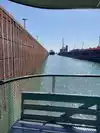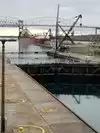 This is the shipping arrangement between Lake Superior and Huron. Once the ship is inside the locks the gate is closed which are water tight. Water table is raised or lowered 21 ft by the force of gravity and the gates are opened when the water level is same on the opposite side of one of the locks. Then ship passes to the other side of the lakes.