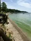 We were surprised to find this little gem. I had been to Put in bay a couple times before, but never knew this was here. Beautiful lake area with kayaking, boating, and even a nice park, where you can relax, and pack a lunch and sit at the picnic tables to enjoy. So pretty here. We enjoy it a lot There is a rock beach here, but many people were laying out on the grass and on beach towels. Also, there is a small walk -up deli type stand that served various foods. I think Ice cream too. There is also a campsite up the hill. Great place to have a fun time.