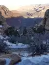 Most people who take this trail just go part way down. Likely 600 to 1000 feet down ( the canyon is a mile deep ). The switchbacks at the top of the canyon wall were icy, snowy and muddy in spots in March so many had on hiking boots, crampons and walking sticks. I did not have crampons but I wore good hikers. We are glad we dressed in layers as the temps rise as you go lower into the canyon plus it was a bit of a workout too... Bring water and snacks too. We also met some hardy souls along the trail who had camped overnight in the canyon even in March.