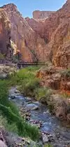 Silver bridge is the one that connects the Bright Angel trail to the Phantom Ranch. We could see the Colorado river down our feet while going over the bridge, and can be scary for people who are afraid of heights - like us. There was moderate current in the river from left to the right while we were walking towards the Bright Angel trail. What an amazing view!