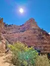 We refilled our reservoirs, drank some water and drenched ourselves in the cold water from the tap. The water can be shut-off any time and there was no water available at 3 miles and 1.5 miles resthouse area. There was a small stream across the street, me and my wife sat under a tree with our feet in the cold water stream. Spent approx 1.5 hours at the Indian Garden before resuming the hike at 3:50 PM. Sun was at its peak, but we didn't feel the heat during the rest of the hike. It was steeper than the way to the Indian Garden, but didn't feel the need to drink much water on the rest of the hike, in fact we had to dump some of the water to reduce the weight.