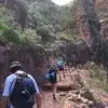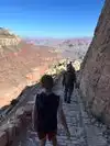 We had a party of 11 hikers. We started down at 9 am and gathered half way down for lunch break and photos together. Exciting, exhilarating, breath taking at times, an achievement to surpass. Beautiful sights and so much fun but challenging as there was no turning bavk. Stayed two nights at Phantom Ranch and headed back up Bright Angel trail early the third day.