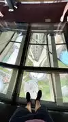 They have an overpriced bar at the top and limited high-top chairs for seating on the glass. The revolving floor below is interesting, with glass-bottom viewing. They also have limited window seating that has to be purchased for an hour along with drinks and is 21+.