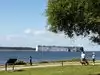 The drive to the lighthouse and beach area is very beautiful, trees, houses. Very clean and picturesque. There are benches by the beach where you can sit and watch vehicle carrier ships disappear in the horizon.